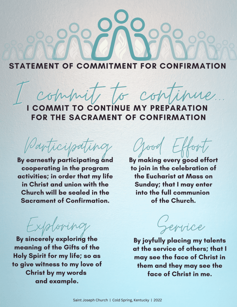 Each year, the 8th grade students who are preparing for Confirmation will be signing The Statement of Commitment.
